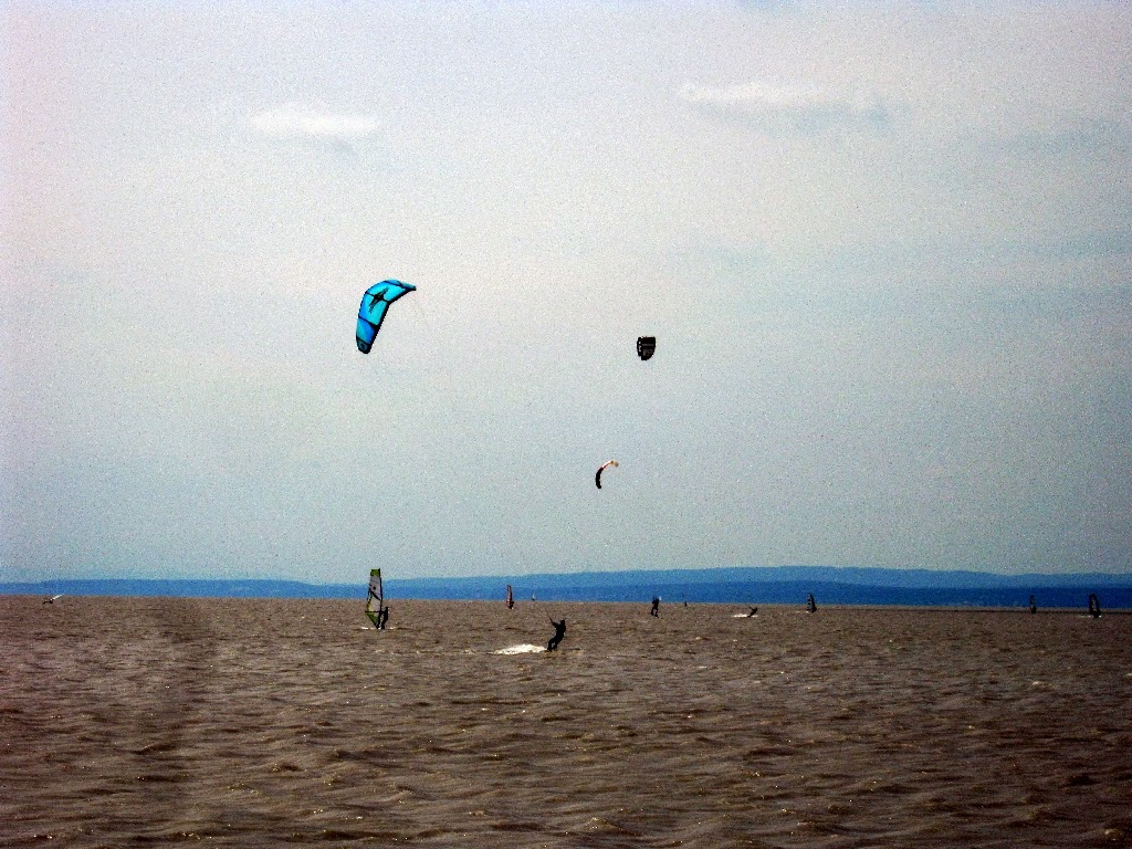 Az erős szélben egy csomóan szörföztek, és ernyővel deszkáztak.